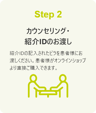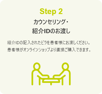 患者様が当社オンラインショップから紹介IDを使って直接購入できます。